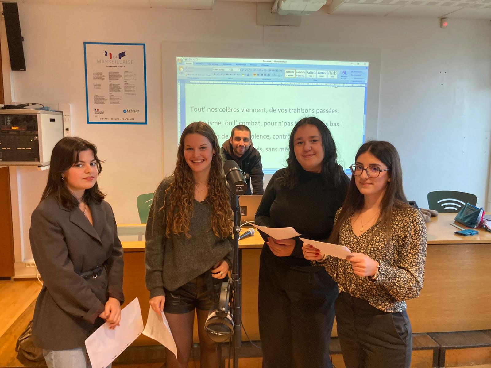Après le travail d’écriture nous avons appris à poser les paroles sur une instru et nous sommes ensuite passés groupe par groupe pour présenter notre travail à l'oral. Les plus courageux sont allés enregistrés le slam fait durant les 2h.